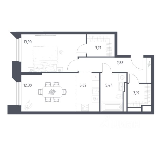В продаже 1-комнатная квартира в корпусе 2 ЖК 'Квартал Строгино'. Квартира располагается на 13 этаже, общая площадь 41.74 м2.
