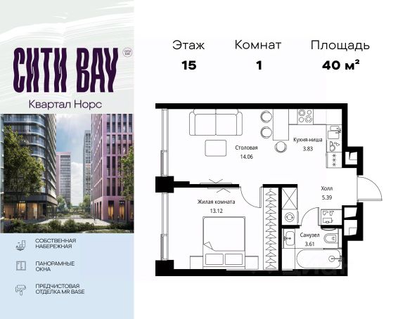 Прямая продажа от застройщика. Продаётся 1-комнатная квартира общей площадью 45.07 м² с предчистовой отделкой в ЖК Сити Бэй, квартале Норс, на 15-м этаже 26 этажного дома. Концепция жилого комплекса Сити Бэй - настоящий город в городе с отлично развитой инфраструктурой и собственной благоустроенной набережной. На территории жилого комплекса расположено пять кварталов - Атлантик, Пасифик, Индиан, Норс, Клиф. Жилой квартал Сити Бэй отличается оригинальной концепцией и выделяется среди других проектов такими характеристиками как: - Архитектура, - Виды из окон, - Природное окружение, вызывая гордость у жителей и восхищение у прохожих. Вся жизнь района Покровское-Стрешнево строится вокруг водных объектов: - Пойма реки Сходни с уникальной экосистемой, - Речка Химка и Химкинское водохранилище, - Москва-река, - Канал имени Москвы. Кругом вода, и местные с удовольствием этим пользуются. А сразу за рекой - центр водного спорта в Строгино с вейк-парком и яхт-Клубами. Помимо воды, здесь очень много зелени: - Рядом Сходненский ковш памятник природы, естественный амфитеатр глубиной 40 метров; - Парк при усадьбе Братцево с фруктовым садом; - Дубовая роща "Маяк", - Алешкинский лес; - Лесопарк Покровское-Стрешнево с пляжами и бобрами. Главные транспортные артерии района: - Волоколамское шоссе, - Таганско-Краснопресненская линия метро и МЦД-2. Всего за 20 минут можно добраться до центра на машине или метро, а МЦД связывает ЖК Сити Бэй с северными, восточными и юго-восточными районами. Компания MR предлагает своим клиентам специальные условия приобретения квартир в рамках программ ипотечного кредитования от банков-партнеров.