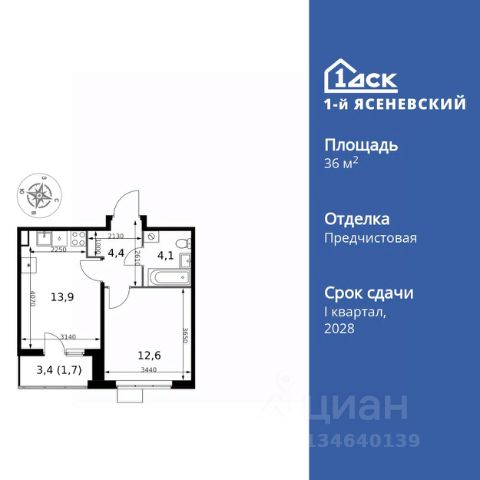 Прямая продажа от застройщика! Жилой Комплекс класса Комфорт Плюс. Продаётся 1-к квартира номер 139 общей площадью 36.2 кв.м. на 15-м этаже 16 этажного здания. Предчистовая отделка. Цена с учётом скидки. Особенности квартиры: - Квартиры рядом с метро - м. Корниловская 9 мин пешком - 63 га лесопарка за окнами - Школа c ИТ-кластером и бассейном. 2 детских сада - Организуем показ в удобное для вас время! - Линейная планировка - максимальная функциональность и удобство. - Гардеробная - удобство для хранения и организации вещей. - Лоджия - уютное место для отдыха и тишины. Квартира с предчистовой отделкой. Вам не придется заниматься черновыми и трудоёмкими работы, а чистовую отделку и дизайн - сделайте на свой вкус. Информация о комплексе: ЖК "1-й Ясеневский": преимущества городской инфраструктуры и природы. Пешая доступность к метро, школе с бассейном и ИТ-кластеру, а также 63 га Троицкого лесопарка под окнами. Закрытая территория с бульварами, велодорожками, кафе и дворами без машин. Фруктовые деревья и городские сады создают уникальную атмосферу. Всего в 1 км от МКАД - идеальный баланс для современной жизни. Транспортная доступность: До метро "Корниловская" - 12 минут пешком До метро "Тютчевская" - 25 минут пешком До метро "Теплый стан" - 10 минут на транспорте До метро "Ольховая" - 30 минут на общественном транспорте Личный автотранспорт: Выезд на Калужское шоссе - 500 м МКАД - 1 км Внутренняя инфраструктура: ЖК "1-й Ясеневский" - идеальное место для семей с детьми. Рядом Троицкий лесопарк для прогулок, а во дворах - современные детские площадки, разработанные с участием психологов. В шаговой доступности два детских сада и школа на 1100 мест с ИТ-кластером, бассейном и классами робототехники. Всё для счастливого детства и успешного будущего. Квартира с предчистовой отделкой - ваш дизайн без черновых работ