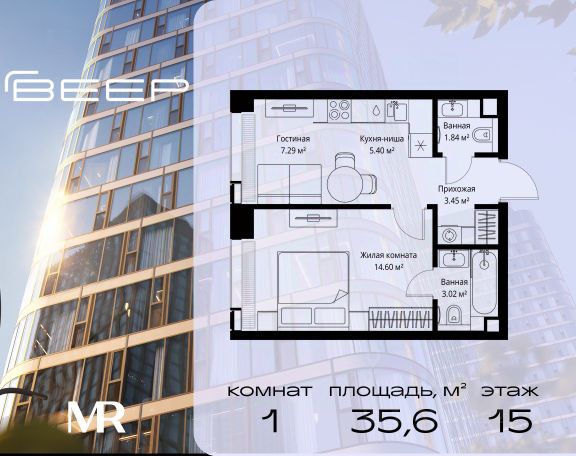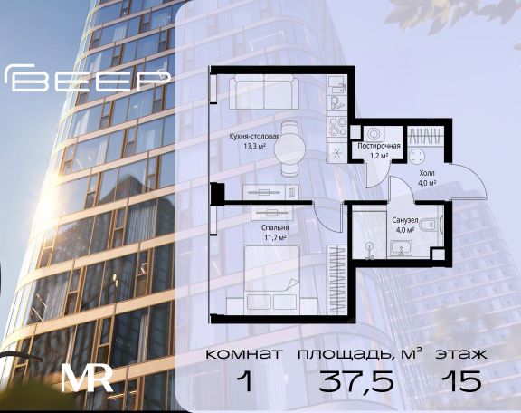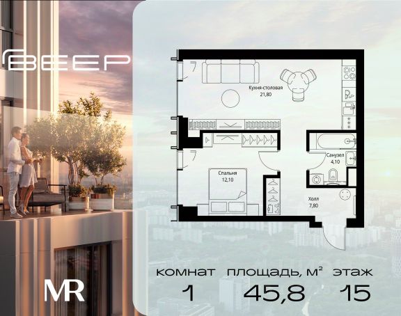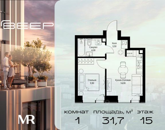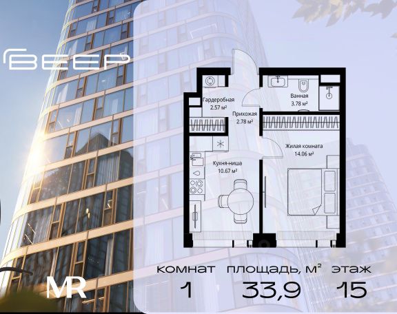 Старт продаж новой очереди! Продаётся 1-комнатная квартира общей площадью 53.54 м² без отделки в ЖК Веер на 15-м этаже 35 этажного дома. Веер.2 — вторая очередь футуристичного квартала бизнес-класса Веер. Это новая экосистема в престижном Западном округе Москвы, поражающая масштабностью внутренней инфраструктуры. ЖК находится всего в 5 минутах от Кутузовского проспекта и в 15 минутах от Сколково. Ансамбль из четырех стеклянных башен с доминантой в 237 метров разработан по принципу современного урбанизма и выражен в лаконичных объемах — параллелепипедах со сглаженными углами, которые придают зданиям утонченный вид. Расположение и транспортная доступность: • Образовательный комплекс в составе топовой школы, состоящий из двух зданий: основное на 1500 школьных и 450 дошкольных мест, отдельное здание детского сада на 300 мест. • Парк "Долина реки Сетунь" площадью более 700 гектаров • Рядом МГУ, МГИМО, РАНХиГС и Академия ФСБ • 15 минут по Кутузовскому проспекту до ужина в центре с видом на Москву-реку • 18 минут пешком до м. "Давыдково" • Открытие новых станций метро в шаговой доступности в будущем Инфраструктура: Двор в Веер.2 — это ассиметричные холмы, каменные "лабиринты", зеленые ковры и хвойные островки с единой живой экосистемой. Здесь есть все: • Павильон умиротворения Место отдыха под навесом в спокойной части двора, окруженное деревьями. • Активная тропа Тактильная дорога из камней разного диаметра для расслабляющих прогулок. • Бизнес-гарден Оборудованное пространство для работы на свежем воздухе со столом и встроенными розетками. • Детская площадка Двухуровневая площадка "Ботаника" с песочницей, переговорной трубой и горкой "Дружба". Компания MR предлагает своим клиентам специальные условия приобретения квартир в рамках программ ипотечного кредитования от банков-партнеров.