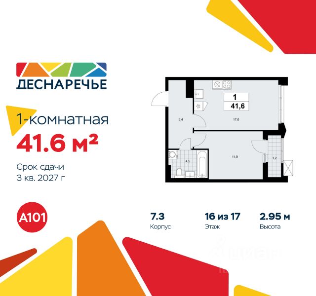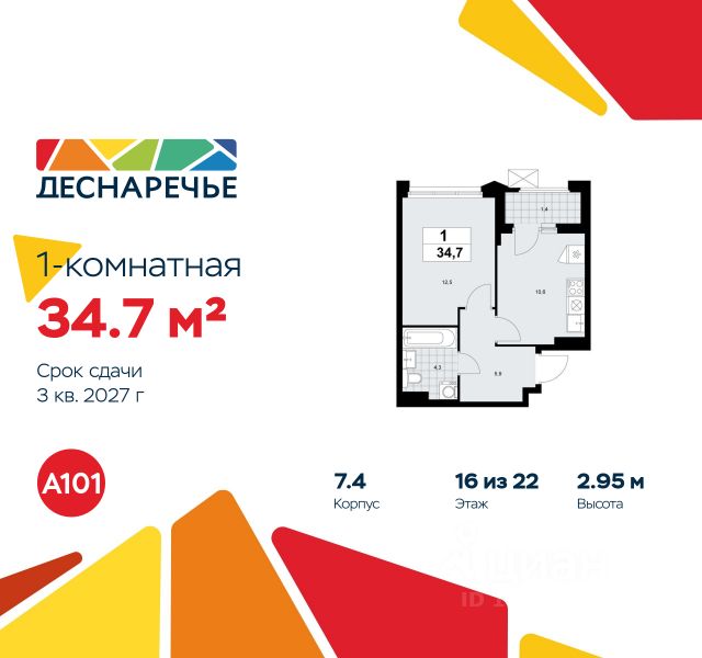 Продается однокомнатная квартира 1859 в новостройке ЖК "Деснаречье" по адресу Москва, ТиНАО, Новомосковский АО, Десеновское С/П, Десна деревня, Москва, район Троицк, ЖК Деснаречье, к. 4.8. Общая площадь квартиры - 35.80 кв. м., этаж 16 из 16, секция 23. Тип проекта, по которому построен дом - монолит, компания-застройщик - ООО "А101". Стоимость квартиры - 16754042 Р. Срок сдачи - 1 квартал 2026. ПРЕДЛОЖЕНИЯ ОТ ЗАСТРОЙЩИКА В ФЕВРАЛЕ 2026: Скидки до 10% на все квартиры. Только в офисах продаж до 28 февраля. Ипотека от 13,9 % для всех! На весь срок. "Семейная ипотека" вернулась. Ставка от 3,5 % на весь срок! Без удорожания! Выгодное ипотечное комбо: Ипотека от 2200 р./мес. и от 6 % после рождения ребёнка! Ипотека для всех "Держи пять!" - ставка 5 % на 2 года! *более подробную информацию по скидкам и акциям уточняйте в отделе продаж Масштабный ЖК "Деснаречье" состоит из 3 районов ("Парк", "Река" и "Лес") в живописном природном окружении - на берегах двух рек. На территории каждого района появится собственная развёрнутая инфраструктура и уникальное благоустройство: скверы, спортивные и игровые площадки, пешеходные и велосипедные маршруты. До станции метро "Десна" (открытие запланировано на 2027 год) - всего 10 минут пешком от района. На автомобиле до ст. метро "Ольховая" и "Прокшино" - 12 минут. "Фаст-трек" свяжет "Деснаречье" со спортивно-событийным кластером и бизнес-кварталом "Прокшино". В пешей доступности и на первых этажах домов откроются: супермаркеты, школы, детские сады, спортивная школа, медицинские клиники, кафе, пространства для досуга и развития детей и взрослых. Уже сейчас доступна действующая инфраструктура соседней локации. Это настоящий "15-минутный город", когда всё рядом. Для активного и созерцательного отдыха - живописные прогулочные территории в лесу, благоустроенные зоны вдоль рек Незнайка и Десна с пирсом и лодочной станцией, ФОК, термальный комплекс с бассейном. Закрытые дворы с системой контроля доступа свободны от машин, оснащены качественным спортивным и игровым оборудованием. Преимущества "Деснаречья": - ст. метро "Десна" (2027 год) - пешая доступность - 2 реки, природный парк, лесной массив - "15-минутный город" - вся инфраструктура рядом с домом - школы и детские сады, спортивная школа