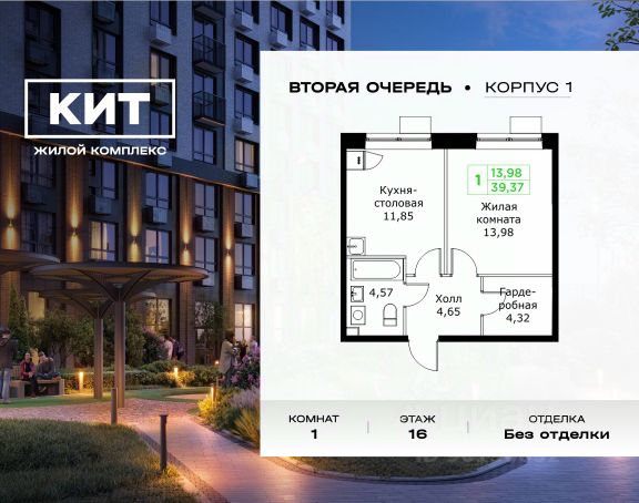 Продаётся 1-к квартира 41.39 кв.м. без отделки в ЖК "КИТ2" на 16-м этаже 25 этажного дома.Жилой комплекс "Кит 2" спроектирован в урбанистической концепции "Город в Городе". Объект бизнес-класса предлагает рациональный подход к набору опций, необходимых для гармоничной жизни. Проект представляет собой два корпуса, которые образуют единую приватную территорию. Ее доминантой является двор с красивым ландшафтным дизайном и различными зонами, ориентированными на интересы жителей разного возраста. При создании пространства в приоритет ставился комфорт жителей. В шаговой доступности находятся: торговый центр, рестораны, кинотеатры, спортивный зал, образовательные учреждения и множество других объектов в сфере услуг. Преимущества проекта: - 3 корпуса для приватной жизни - Видовые характеристики (просматриваются Москва - Сити и Останкинская телебашня) - Широкая квартирография по всем типам квартир - Увеличенное остекление - 3 варианта отделки: БОРДО, СТОКГОЛЬМ, ОСЛО - Богатая развлекательная инфраструктура - Высокий уровень безопасности территории Расположение комплекса: - 2,2 км до Волковского шоссе - 2,8 км до Ярославского шоссе - 5,7 км до МКАД - 5 минут пешком до ж/д станции "Мытищи" и Автовокзала - 18 минут до станции метро "Комсомольская" - 30 минут до станции метро "Медведково"
