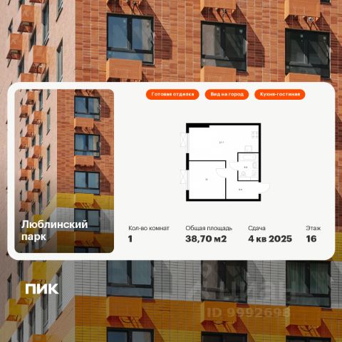 Продаётся 1-комн. квартира площадью 33,7 кв.м на 16 этаже 25 этажного дома (Корпус 18-20, Секция 2) проекта ПИК Люблинский парк. Светлый просторный подъезд на уровне земли, функциональная планировка, большие окна, c отделкой. Жилой квартал "Люблинский парк" расположен на юго-востоке Москвы, в шаговой доступности от станции "Братиславская". На метро до центра ехать всего 30 минут. Также недалеко станция МЦД "Перерва", от которой можно уехать в Москву или в область. В проекте 54 жилых корпуса, три школы, семь детских садов, поликлиника. В районе есть все условия для комфортной жизни: торговые центры, школы, детские сады, поликлиники и спортивные центры. Рядом находятся усадьба Люблино, скверы и парки. Различные магазины, кафе и другие сервисы откроются на первых этажах, а на подземных будут паркинги с удобной навигацией. В зелёных дворах без автомобилей мы построим детские площадки и места для отдыха. А ещё "Люблинский парк" стал третьим проектом ПИК с большой игровой площадкой PlayHub, которая уже открылась между 1-м и 2-м блоками на безопасном расстоянии от дороги. Новое детское пространство "Остров" воплощает идею бесконечной игры. Ландшафт площадки — это ещё и игровой элемент, который помогает детям придумывать множество самых разнообразных игр. Здесь интересно детям разного возраста — от малышей до подростков. Жителям квартала Люблинский парк и их друзьям доступен проект ПИКСПОРТ — это бесплатные занятия с профессиональными тренерами. Тренировки по разным направлениям, например йога, фитнес, бег, воркаут, проходят как в группе на улице рядом с домом, так и онлайн. Артикул 660319 (Застройщик ООО СЗ "Люблино Девелопмент")