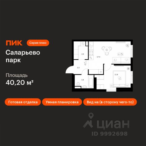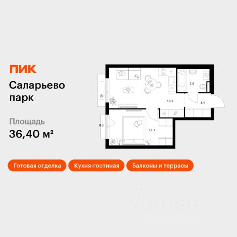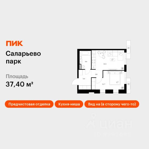 Продаётся 1-комн. квартира площадью 34,1 кв.м на 16 этаже 17 этажного дома (Корпус 20, Секция 1) проекта ПИК Саларьево парк. Светлый просторный подъезд на уровне земли, функциональная планировка, большие окна, c отделкой. Жилой район "Саларьево парк" расположен в Новой Москве, в четырёх километрах от МКАД по Киевскому шоссе. Две станции метро: "Саларьево" и "Филатов луг", — находятся в пешей доступности от проекта. Дойти до них можно за 510 минут. В квартале уже создана качественная среда, где есть абсолютно всё для полноценной жизни, работы и отдыха. Благодаря удобному расположению проекта всё важное будет рядом: детские сады, школы, кафе и рестораны, шопинг в торговых центрах, фитнес и даже аэропорт. Все корпуса в квартале гармонично сочетаются, образуя единую городскую среду. Между собой их объединяет невысокая этажность и натуральная цветовая гамма. Здесь приятно гулять и проводить время на улице всей семьёй. В "Саларьево парке" создана уникальная образовательная среда, включающая в себя шесть школ, рассчитанных на 6 250 учеников. Две из них уже открыты, их посещает 2 300 детей. Также на территории "Саларьево парка" находится 12 детских садов, один из которых с бассейном. Сейчас уже открыты 7 садов. В "Саларьево парке" открыта уникальная игровая площадка — PlayHub "Оригами". Здесь есть ручей, горка-труба и рельефные холмы. Взрослые смогут отдохнуть в уютном кафе, пока дети играют. Также на территории проекта есть SportHub — большая спортивная зона, разделённая по интересам и возрастам. Здесь можно заниматься разными видами спорта: футболом, баскетболом, волейболом и стритболом. Зимой центральную часть площадки превращают в каток. Во дворах-парках жилого квартала есть места для отдыха, детские и спортивные площадки. На первых этажах домов расположены магазины, кафе и полезные сервисы. Также вблизи проекта есть несколько масштабных торговых центров. До ТЦ "Саларис" пять минут пешком, до "Рио", Metro Cash & Carry и "Леруа Мерлен" — пять минут на автомобиле. Артикул 946811 (Застройщик ООО "Специализированный Застройщик "Тирон")