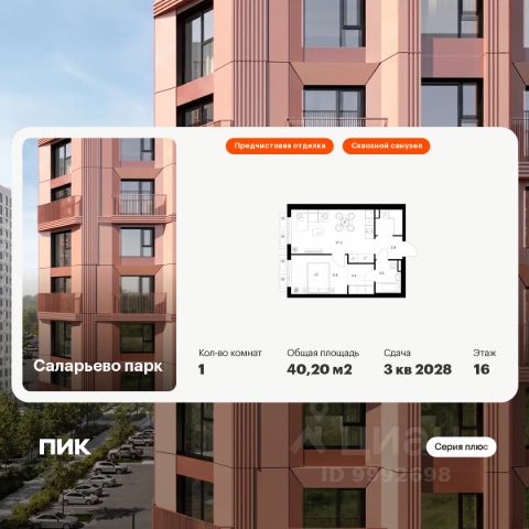 Продается однокомнатная квартира с отделкой в 9 фазе города-парка "Первый Московский". Общая площадь квартиры - 45,4 кв. м, этаж 16 из 19. Срок сдачи - 2 квартал 2026 года. Тип дома - монолитный. Цена указана при 100% оплате. В квартире будет выполнена высококачественная отделка "под ключ". На выбор представлены два стиля отделки: - Classic (классический стиль) - традиционное сочетание материалов и фактур - тёмный, тёплый по тону пол и светлые нейтральные стены, керамогранит с рисунком под мрамор. - Smart+ (современный стиль) - нейтральная цветовая гамма с использованием бетонных фактур и темного керамогранита, керамическая плитка до потолка в ванной и санузле. Независимо от того, какой стиль отделки выберите Вы, можете быть уверенными, что цветовое сочетание будет актуальным долгие годы. Город-парк "Первый Московский" расположен всего в 7 км по Киевскому шоссе (Новая Москва). Из города-парка есть удобный выезд на Киевское шоссе. ТРАНСПОРТНАЯ ДОСТУПНОСТЬ: - 5 мин. на личном автомобиле или 10 мин. на автобусе 189 и 876 до станции метро "Филатов Луг" - 20 мин. пешком до станции метро "Филатов Луг" ИНФРАСТРУКТУРА И БЛАГОУСТРОЙСТВО: 9 фаза сочетает в себе максимальную близость данной фазы строительства к парку Филатов луг. Основной акцент в благоустройстве сделан на разнообразные детские площадки и развивающие комплексы, с зонами для активного и спокойного отдыха взрослых. В каждом из домов предусмотрены кладовые помещения на -1 этаже и коммерческие помещения на 1 этаже. АВТОРСКИЙ ДИЗАЙН: Входные группы выполнены по авторскому дизайну, оснащены системой "тёплый пол". В каждой входной группе будет располагаться комфортабельная зона ожидания. При входе предусмотрено помещение для хранения колясок и на -1 этаже располагается велопарковка.