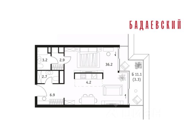 Продаётся 1-комнатная квартира общей площадью 60.30 м² на 16 этаже Жилого Комплекса Бадаевский. О нем говорили. Его ждали. Жилой комплекс "Бадаевский" на Кутузовском проспекте — это место для жизни, которое займет место в истории. Комплекс стал первым в истории московским проектом, победившим в категории Residential на World Architecture Festival. Девелопер Capital Group. В "Бадаевском" исторические здания завода и футуристические "парящие" дома создают единый комплекс, который станет новой достопримечательностью и символом Москвы. Панорамное остекление, террасы и веранды дарят неординарные и захватывающие виды. Благодаря расположению домов и панорамному остеклению, жилые пространства в "Бадаевском" будут наполнены светом. А виды из окон домов-"лент" на Москву-реку, пивоваренный завод, небоскребы "Москва-Сити" и Белый дом дополнены принципиально новым ощущением высоты. На территории Бадаевского завода появится масштабный ландшафтный парк с концепцией "русский лес". Впервые в истории района Дорогомилово у жителей появится прямая связь набережной Тараса Шевченко с Кутузовским проспектом. Близость Москвы-реки добавляет к преимуществам "Бадаевского" природную энергетику и приятные прогулки на свежем воздухе. Подземная парковка позволит сделать территорию завода полностью пешеходной, а сам комплекс представит новый подход к организации открытого и уединенного пространства в центре Москвы. Расположение в начале Кутузовского проспекта делает проект не только престижным, но и удобным: до Третьего транспортного и Садового кольца можно доехать за 5 минут, а Кремль и основные исторические достопримечательности расположены в 15 минутах на автомобиле. Напротив "Бадаевского" находится офисный кластер "Москва-Сити". Для жителей комплекс будет создано не только новое масштабное благоустройство, но и вся необходимая инфраструктура. В исторических корпусах появятся магазины, бутики, кафе и рестораны, коворкинг и крафтовая пивоварня, а в зданиях элеваторов — русская баня. Кроме того, запланирован фермерский рынок и досуговый кластер с музыкальной студией, центром детского творчества и фитнес-центром с бассейном.
