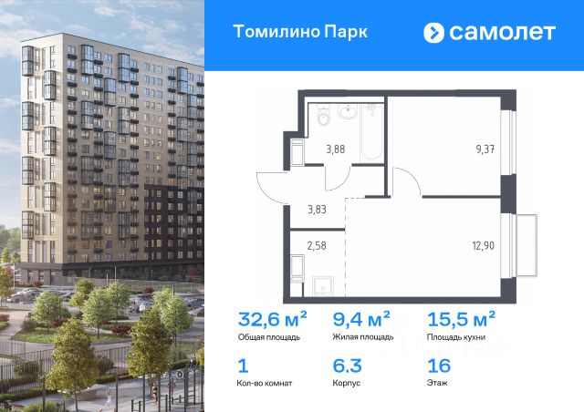 Продажа 1-комнатных квартир на 16 этаже рядом с метро Красково