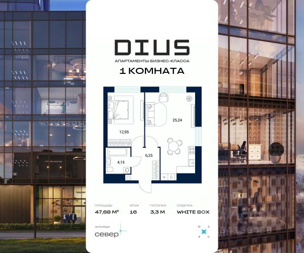 DIUS — многофункциональный комплекс бизнес-класса на севере Москвы, сочетающий сервисные апартаменты, бизнес-центр класса А и торгово-развлекательную галерею. Проект, воплощающий современный подход к жизни в мегаполисе, позволяет объединить комфорт проживания, работу, деловые встречи и досуг в едином пространстве.