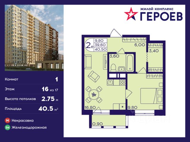 • ✓ В базе Циан 51 1-комнатных квартир на 16 этаже рядом с метро Кучино