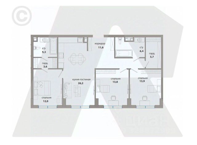 • ✅ Минимальная площадь: 41,6 м²