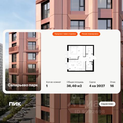 Продаётся 1-комн. квартира площадью 38 кв.м на 16 этаже 23 этажного дома (Корпус 69.1, Секция 1) проекта ПИК Саларьево парк. Светлый просторный подъезд на уровне земли, функциональная планировка, большие окна, предчистовая отделка. Жилой район "Саларьево парк" расположен в Новой Москве, в четырёх километрах от МКАД по Киевскому шоссе. Две станции метро: "Саларьево" и "Филатов луг", — находятся в пешей доступности от проекта. Дойти до них можно за 510 минут. В квартале уже создана качественная среда, где есть абсолютно всё для полноценной жизни, работы и отдыха. Благодаря удобному расположению проекта всё важное будет рядом: детские сады, школы, кафе и рестораны, шопинг в торговых центрах, фитнес и даже аэропорт. Все корпуса в квартале гармонично сочетаются, образуя единую городскую среду. Между собой их объединяет невысокая этажность и натуральная цветовая гамма. Здесь приятно гулять и проводить время на улице всей семьёй. В "Саларьево парке" создана уникальная образовательная среда, включающая в себя шесть школ, рассчитанных на 6 250 учеников. Две из них уже открыты, их посещает 2 300 детей. Также на территории "Саларьево парка" находится 12 детских садов, один из которых с бассейном. Сейчас уже открыты 7 садов. В "Саларьево парке" открыта уникальная игровая площадка — PlayHub "Оригами". Здесь есть ручей, горка-труба и рельефные холмы. Взрослые смогут отдохнуть в уютном кафе, пока дети играют. Также на территории проекта есть SportHub — большая спортивная зона, разделённая по интересам и возрастам. Здесь можно заниматься разными видами спорта: футболом, баскетболом, волейболом и стритболом. Зимой центральную часть площадки превращают в каток. Во дворах-парках жилого квартала есть места для отдыха, детские и спортивные площадки. На первых этажах домов расположены магазины, кафе и полезные сервисы. Также вблизи проекта есть несколько масштабных торговых центров. До ТЦ "Саларис" пять минут пешком, до "Рио", Metro Cash & Carry и "Леруа Мерлен" — пять минут на автомобиле. Артикул 1023361 (Застройщик ООО "Специализированный Застройщик "Тирон")