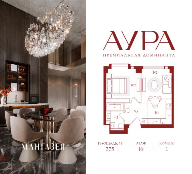 1-комнатная квартира площадью 37,5 м2. Высота потолков 3,16 м. Этаж 16 из 41. О проекте АУРА новая премиальная доминанта Москвы в 10 минутах от Садового кольца. Проект состоит из 42-этажной Бронзовой башни и 41-этажной Серебряной. Рядом набережная Москвы-реки, Даниловский рынок, музеи и галереи, престижные школы и вузы. Двор и благоустройство Приватная территория АУРЫ состоит из нескольких функциональных зон для тихого отдыха, работы и активного времяпровождения на свежем воздухе. На нижнем уровне расположены детские и спортивные площадки, скалодром и крытый павильон для подвижных игр. Выше — амфитеатр для отдыха и вечерних променадов, уличный коворкинг с мебелью и лаунж-зоны с лежаками у воды. На крыше — тихий уголок для занятий йогой, встречи рассветов и наслаждения закатами. По всему двору проложены пешеходные дорожки с подогревом в зимний сезон. Придомовую территорию АУРЫ украсит уникальный для Москвы объект — скала из натурального камня с водопадом, которая станет новой городской достопримечательностью. Эксклюзивная инфраструктура Только для резидентов: • Бьюти-комната • Коворкинг, переговорные и акустические кабинеты • Детская игровая комната • Спортзал и студия для тренировок • Просторные колясочные • Сервисная комната • Лапомойки для домашних питомцев Инфраструктура в составе проекта: • Ресторан авторской кухни • Современная медицинская клиника • Частный детский сад • Бизнес-центр класса "А" • Коммерческие помещения, закрывающие любые потребности — супермаркет, химчистка и др. Атрибуты комфорта • Индивидуальная вентиляция квартир • Вентиляция с очисткой воздуха в общих зонах • Мультизональное центральное кондиционирование (VRF) • Горячая вода круглый год • Вода качества, сопоставимого с питьевой • Усиленная звукоизоляция квартир Входные группы • Гранд-лобби в стиле современной роскоши • Дизайнерские лобби в каждой башне • Панорамное остекление Квартиры Более 40 планировок: от уютных студий до просторных семейных лотов. Всего 916 квартир площадью от 28,1 до 148,8 м². Высота потолков от 3,16 до 6,2 м. Уникальные планировки: • Квартиры с террасами • Квартиры с окном в ванной • Квартиры с круговым остеклением • Двухуровневые пентхаусы Паркинг и келлеры Двухуровневый подземный паркинг на 563 парковочных места: • Постоянные места: 496 (в том числе 48 мест для маломобильных) • Гостевые места: 67 • Персональные кладовые и велостанция • Мойка автомобилей • Станция для подкачки шин • Зарядки для электромобилей • Зона для разгрузки крупногабаритных предметов Интеллектуальные системы • Персональный бесконтактный доступ на территорию и в здание по электронному ключу (Bluetooth/RFID) • Премиальные лифты Mitsubishi • Автоматический въезд на паркинг для резидентов по распознаванию номеров • Круглосуточное видеонаблюдение с возможностью push-уведомлений • Система датчиков для круглосуточного мониторинга • Усиленный сигнал связи — стабильный прием сотовой связи и интернета на всей территории Сервис • Управляющая компания д