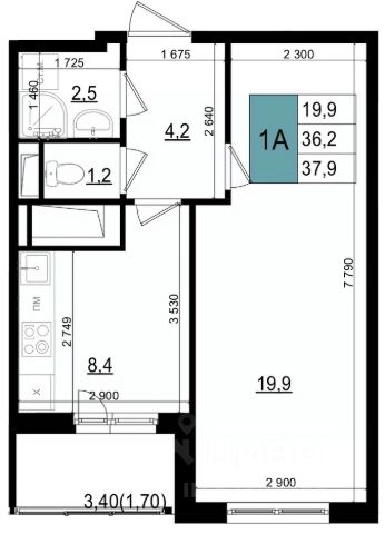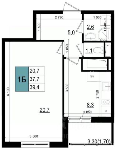• ✅ Минимальная площадь: 34,6 м²