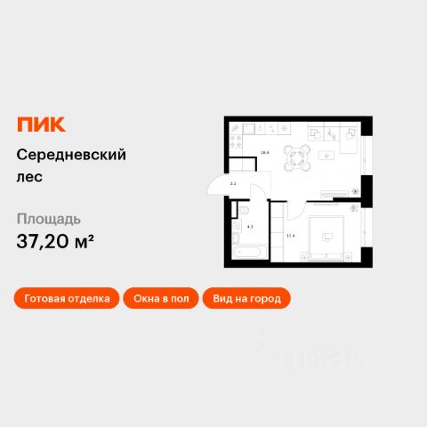 Продаётся 1-комн. квартира площадью 38,5 кв.м на 16 этаже 16 этажного дома (Корпус 2.1.5, Секция 5) проекта ПИК Середневский лес. Светлый просторный подъезд на уровне земли, функциональная планировка, большие окна, c отделкой. В 10 минутах на автомобиле находится станция метро "Внуково", а в 15 минутах — станции "Филатов Луг" и "Саларьево". От них до центра Москвы всего 3540 минут. На рейсовом автобусе от жилого квартала до метро "Филатов Луг" — 20 минут. На территории "Середневского леса" появилось общественное пространство с игровыми площадками, местами для отдыха, пешеходными маршрутами и велопарковкой — для прогулок, отдыха и встреч жителей квартала. Также внутри жилого квартала уже открыта школа на 1100 мест и детский сад для 325 малышей. В дальнейшем откроется ещё один сад для 340 детей. Артикул 1038572 (Застройщик ООО "Специализированный застройщик Середнево")