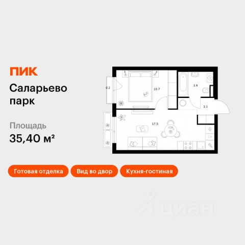 Продаётся 1-комн. квартира площадью 34,1 кв.м на 16 этаже 17 этажного дома (Корпус 20, Секция 1) проекта ПИК Саларьево парк. Светлый просторный подъезд на уровне земли, функциональная планировка, большие окна, c отделкой. Жилой район "Саларьево парк" расположен в Новой Москве, в четырёх километрах от МКАД по Киевскому шоссе. Две станции метро: "Саларьево" и "Филатов луг", — находятся в пешей доступности от проекта. Дойти до них можно за 510 минут. В квартале уже создана качественная среда, где есть абсолютно всё для полноценной жизни, работы и отдыха. Благодаря удобному расположению проекта всё важное будет рядом: детские сады, школы, кафе и рестораны, шопинг в торговых центрах, фитнес и даже аэропорт. Все корпуса в квартале гармонично сочетаются, образуя единую городскую среду. Между собой их объединяет невысокая этажность и натуральная цветовая гамма. Здесь приятно гулять и проводить время на улице всей семьёй. В "Саларьево парке" создана уникальная образовательная среда, включающая в себя шесть школ, рассчитанных на 6 250 учеников. Две из них уже открыты, их посещает 2 300 детей. Также на территории "Саларьево парка" находится 12 детских садов, один из которых с бассейном. Сейчас уже открыты 7 садов. В "Саларьево парке" открыта уникальная игровая площадка — ПлейХаб "Оригами". Здесь есть ручей, горка-труба и рельефные холмы. Взрослые смогут отдохнуть в уютном кафе, пока дети играют. Также на территории проекта есть СпортХаб — большая спортивная зона, разделённая по интересам и возрастам. Здесь можно заниматься разными видами спорта: футболом, баскетболом, волейболом и стритболом. Зимой центральную часть площадки превращают в каток. Во дворах-парках жилого квартала есть места для отдыха, детские и спортивные площадки. На первых этажах домов расположены магазины, кафе и полезные сервисы. Также вблизи проекта есть несколько масштабных торговых центров. До ТЦ "Саларис" пять минут пешком. Артикул 946811 (Застройщик ООО "Специализированный Застройщик "Тирон")