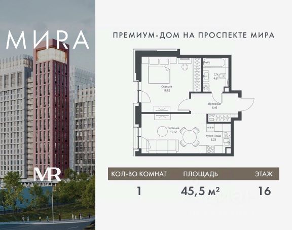 Прямая продажа от застройщика. Продаётся 1-комнатная квартира общей площадью 36.50 м² без отделки в доме премиум-класса МИRА на 16-м этаже 24 этажного дома. Квартира расположена в корпусе 3. Дом премиум-класса МИRA это: • Спокойный район с богатой историей и сложившейся инфраструктурой • Авторская архитектура на стыке классики и современности • Вход в парк прямо из жилого комплекса • Панорамные виды на Яузу, парки, ВДНХ и скульптуру "Рабочий и колхозница" • Удобные сервисы и безопасность для каждого резидента Расположение: Жилой квартал расположен в Алексеевском районе на северо-востоке Москвы, на второй линии домов, таким образом вы сможете дистанцироваться от шума и суеты проспекта Мира, но при этом будете жить недалеко от этой важной городской магистрали. Прямо у дома: • Парк Акведук • Река Яуза • Памятник "Рабочий и колхозница" Пешком: • 16 мин м. ВДНХ На автомобиле: • 12 мин ТТК • 15 мин Садовое кольцо • 12 мин Национальный парк "Лосиный остров" Благоустройство: Концепция благоустройства от бюро "ДРУЖБА" разработана в стиле "Лесная тропа". В уютном дворе расположились словно затерянные в лесу, площадки для отдыха. Они разделяются островками с травами, кустарниками, крупными камнями и деревьями, между которыми проходят узкие песчаные тропинки с деликатной подсветкой по вечерам. Центральной точкой притяжения для жителей станет главная площадь с фонтаном, которая открывается сразу из двух входных групп. Внутренний двор МИRA: • Детская площадка с зонами для игр малышей до трех лет и детей более старшего возраста • Спортивная площадка с профессиональным оборудованием для тренировок • Декоративные перголы • Воздушный арт-объект с подсветкой, похожий на облако • Чайный домик, где в отдельном отапливаемом павильоне можно в любое время года попить кофе с соседями или устроить камерное семейное чаепитие • Зоны для работы и отдыха с гамаком под навесом, скамейками и креслами Инфраструктура и окружение: В Алексеевском районе есть огромные благоустроенные парки, магазины, гимназии с высоким рейтингом и филиалы ВУЗов, частные и государственные детские сады, модные кофейни и фитнес-центры. В квартале МИRА предусмотрены: • 2 ресторана с видом на парк Акведук • 3 кафе • фитнес-студия • подземный паркинг на 330 машино-мест Компания MR предлагает своим клиентам специальные условия приобретения квартир в рамках программ ипотечного кредитования от банков-партнеров.