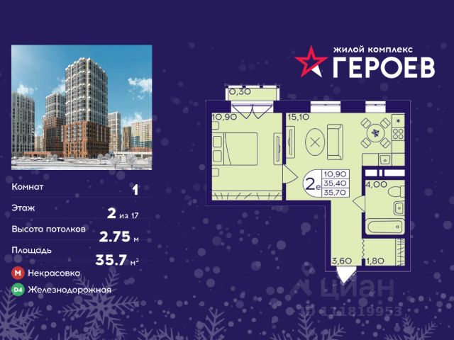 Продаётся 1-комнатная квартира 35.70 кв. м. в жилом комплексе "Героев" в Балашихе, Железнодорожный. Квартира расположена на 2 этаже 410 корпуса. В наличии квартиры с отделкой. Всего 40 минут до центра Москвы. При покупке квартиры в сданном доме ключи выдаются сразу! Жилой квартал "Героев" - это уютный проект для семей с детьми. В квартале созданы все условия для досуга всех возрастов: игровые и спортивные площадки, места для отдыха и прогулочные зоны. За 15 минут можно дойти от дома до Ольгинского лесопарка, популярного места для отдыха на свежем воздухе. На территории жилого комплекса уже открыт детский сад на 250 мест и началось строительство еще одного - для 220 малышей, а также школы для 1320 учеников. Рядом работают магазины, кафе, супермаркеты, пункты выдачи. Преимущества: • В уютных светлых квартирах с просторными кухнями-гостиными удобно встречать гостей и проводить время наедине друг с другом. • Благодаря увеличенному остеклению в комнатах много света. • Квартиры продаются с отделкой, можно заселяться сразу после получения ключей.