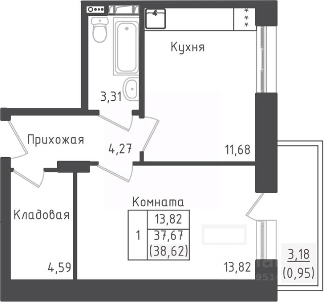 Продаётся апартамент, находящийся в собственности 33.9м2. Отдельно можно приобрести кладовку (400000р) 7.4м2, если снести смежную не капитальную стену, то площадь апартамента станет 40м2. Перепланировка согласована. Осталось снести стену и отдать документы на регистрацию в ЕГРН. Окна на обе стороны дома. По плану это отдельная кухня и комната. Дом сдан. Люди делают ремонт. Живут. Свет, вода, отопление. В доме собственная котельная на газе. Возможно организация офиса, проживание, стоматологический кабинет, частный детский сад и пр. Агентам не беспокоить, есть свой агент.