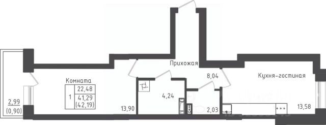 Продаётся 1-комнатная квартира в строящемся доме (Дом 1), срок сдачи: I-кв. 2026, общей площадью 42.19 кв.м., на 2 этаже. Квартал жилой застройки "Зеленый Оазис-Город"