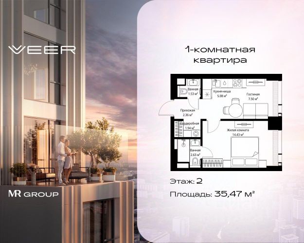 Старт продаж новой очереди! Продаётся 1-комнатная квартира общей площадью 32.97 м² без отделки в ЖК VEER на 2-м этаже 25 этажного дома. VEER.2 — вторая очередь футуристичного квартала бизнес-класса VEER. Это новая экосистема в престижном Западном округе Москвы, поражающая масштабностью внутренней инфраструктуры. ЖК находится всего в 5 минутах от Кутузовского проспекта и в 15 минутах от Сколково. Ансамбль из четырех стеклянных башен с доминантой в 237 метров разработан по принципу современного урбанизма и выражен в лаконичных объемах — параллелепипедах со сглаженными углами, которые придают зданиям утонченный вид. Расположение и транспортная доступность: • Образовательный комплекс в составе топовой школы, состоящий из двух зданий: основное на 1500 школьных и 450 дошкольных мест, отдельное здание детского сада на 300 мест. • Парк "Долина реки Сетунь" площадью более 700 гектаров • Рядом МГУ, МГИМО, РАНХиГС и Академия ФСБ • 15 минут по Кутузовскому проспекту до ужина в центре с видом на Москву-реку • 18 минут пешком до м. "Давыдково" • Открытие новых станций метро в шаговой доступности в будущем Инфраструктура: Двор в VEER.2 — это ассиметричные холмы, каменные "лабиринты", зеленые ковры и хвойные островки с единой живой экосистемой. Здесь есть все: • Павильон умиротворения Место отдыха под навесом в спокойной части двора, окруженное деревьями. • Активная тропа Тактильная дорога из камней разного диаметра для расслабляющих прогулок. • Бизнес-гарден Оборудованное пространство для работы на свежем воздухе со столом и встроенными розетками. • Детская площадка Двухуровневая площадка "Ботаника" с песочницей, переговорной трубой и горкой "Дружба". Компания MR предлагает своим клиентам специальные условия приобретения квартир в рамках программ ипотечного кредитования от банков-партнеров.