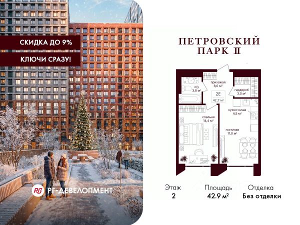 Рассрочка 0%. Первый платёж 30%, второй - не позднее 31.12.2026 г. Продаётся 1-комнатная квартира 45.6 кв.м. в ЖК "Петровский парк II" на 2-м этаже 17 этажного дома. ЖК "Петровский парк II" — жилой комплекс в Савёловском районе, где город ощущается иначе. Здесь история и масштаб Москвы не давят, а задают фон для спокойной, уверенной жизни рядом с центром. Это место, где статус читается не в громких формулировках, а в окружении, архитектуре и ощущении пространства. Коротко о важном: • Район с глубоким историческим контекстом и парковым окружением; • 5 минут пешком до метро "Динамо", рядом с деловой и культурной жизнью города; • Редкое сочетание: энергия мегаполиса и тишина зелёных аллей; • Архитектура от бюро Syntaxis с пластикой форм и индивидуальным характером фасадов; • Панорамные виды на город и зелёные массивы Петровского и Тимирязевского парков; • Закрытый двор без машин, вдохновлённый эстетикой дворцовых садов; • Просторные гранд-лобби с высокими потолками и выверенной, респектабельной эстетикой; • Частный детский сад во дворе; • Подземный паркинг и кладовые; • РГ-Девелопмент - ТОП-20 крупнейших застройщиков Москвы. Расположение комплекса формирует особое ощущение свободы выбора. Утром - прогулка по тенистым аллеям Петровского парка, днём - работа и встречи в деловых кластерах поблизости, вечером - культурные события, рестораны и городские пространства в нескольких минутах пути. Здесь расстояния измеряются не километрами, а шагами от дома. Архитектура "Петровского парка II" задумана как современная доминанта района и одновременно как уважительный диалог с исторической средой. Асимметричные объёмы, волнообразные элементы и игра света и тени создают выразительный, но сдержанный силуэт. Архитектура наполнена воздухом и визуальным ритмом, оставаясь спокойной и уверенной. Общественные пространства продолжают эту логику. Два гранд-лобби с высокими потолками и благородной цветовой палитрой воспринимаются как пространства, где хочется замедлиться: встретить гостей, перевести дыхание после дня или просто почувствовать уровень среды, в которой вы живёте. Внутренний двор комплекса - это отдельный мир, закрытый от машин и городского шума. Ландшафтный дизайн отсылает к регулярным дворцовым садам: геометрия аллей, зелёные "кабинеты", цветники и камерные зоны отдыха создают разные сценарии для повседневной жизни. Здесь органично соседствуют детские игровые пространства, плейхаб, спортивные зоны и тихие места для отдыха. На территории комплекса расположены магазины, кафе и рестораны, а также частный детский сад, встроенный в общую структуру двора. Подземный паркинг и кладовые поддерживают ощущение порядка и цельности пространства.