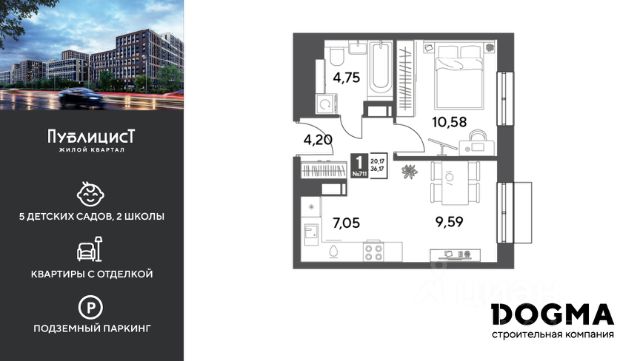 Продаётся 1-комнатная квартира в строящемся доме (Корпус 4), срок сдачи: IV-кв. 2026, общей площадью 47 кв.м., на 2 этаже. Расположение, транспортная доступность