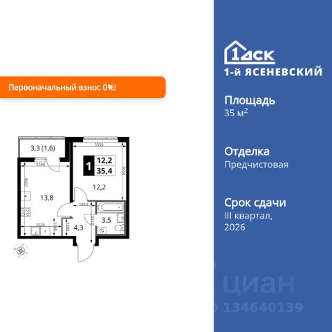 Прямая продажа от застройщика! Жилой Комплекс класса Комфорт Плюс. Продаётся 1-к квартира номер 9 общей площадью 35.8 кв.м. на 2-м этаже 16 этажного здания. Отделка Whitebox. Особенности квартиры: - Квартиры рядом с метро - м. Корниловская 9 мин пешком - 63 га лесопарка за окнами - Школа c it-кластером и бассейном. 2 детских сада - Линейная планировка - максимальная функциональность и удобство. - Гардеробная - удобство для хранения и организации вещей. - Лоджия - уютное место для отдыха и тишины. Квартира с предчистовой отделкой (White box). Вам не придется заниматься черновыми и трудоёмкими работы, а чистовую отделку и дизайн - сделайте на свой вкус. Информация о комплексе: В жилом комплексе комфорт-плюс класса "1-го Ясеневского" доступны преимущества двух стилей жизни. Ведь в пешей доступности метро, школа с 25-метровым бассейном и IT-кластером и при этом целых 63 га благоустроенного Троицкого лесопарка под окнами, где так приятно дышать свежим воздухом и слушать пение птиц. Собственная закрытая территория "1-го Ясеневского" представляет собой уютный оазис. Здесь и зеленый освещенный бульвар для прогулок, система велодорожек, маленькая городская площадь, кафе, пекарни и кофе поинты. А еще дворы без машин и многоэтажная парковка. Изюминка территории - фруктовые деревья во дворах и городские сады. "1-й Ясеневский" - всего в 1 км от МКАД, на территории новой Москвы. Жилой комплекс, где есть все необходимое для современного человека. Транспортная доступность: До метро "Корниловская" - 12 минут пешком До метро "Тютчевская" - 25 минут пешком До метро "Теплый стан" - 10 минут на транспорте До метро "Ольховая" - 30 минут на общественном транспорте Личный автотранспорт: Выезд на Калужское шоссе - 500 м МКАД - 1 км Внутренняя инфраструктура: ЖК "1-й Ясеневский" можно назвать идеальным местом для жизни семьи с детьми. Здесь буквально за домом находится Троицкий лесопарк - излюбленное место прогулок молодых родителей. А во внутренних дворах под детские площадки выделены специальные зоны. Они оборудованы всем, что нужно для счастливого детства: современными и максимально безопасными качелями, песочницами и лазалками. Оборудование и игровые сценарии на детских площадках спроектированы вместе с командой детских психологов для правильного развития ребенка и для повышения их интереса. Также рядом с домом два детских садика, один из которых уже построен и школа на 1100 мест. Школу по праву можно назвать образцовым учебным заведением. В ней закладываются основы успешного будущего. Здесь есть класс робототехники, IT-кластер, 25-метровый бассейн и прекрасно оборудованные спортзалы.