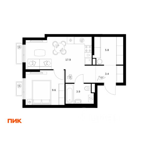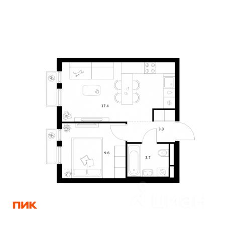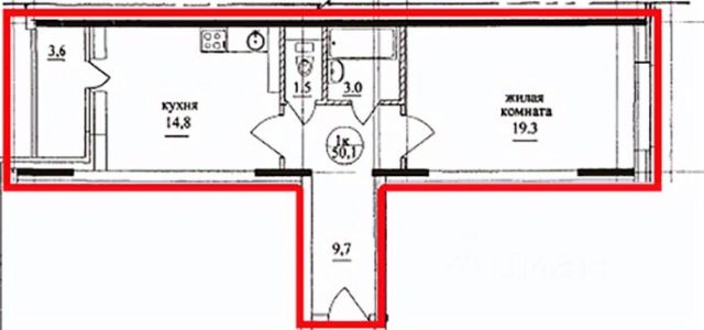 Общая площадь: 52.00 м.кв., Жилая площадь: 19.30 м.кв., Площадь кухни: 14.80 м.кв.