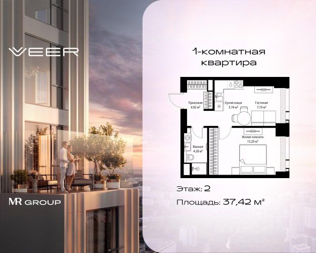 Старт продаж новой очереди! Продаётся 1-комнатная квартира общей площадью 43.12 м² без отделки в ЖК VEER на 2-м этаже 35 этажного дома. VEER.2 — вторая очередь футуристичного квартала бизнес-класса VEER. Это новая экосистема в престижном Западном округе Москвы, поражающая масштабностью внутренней инфраструктуры. ЖК находится всего в 5 минутах от Кутузовского проспекта и в 15 минутах от Сколково. Ансамбль из четырех стеклянных башен с доминантой в 237 метров разработан по принципу современного урбанизма и выражен в лаконичных объемах — параллелепипедах со сглаженными углами, которые придают зданиям утонченный вид. Расположение и транспортная доступность: • Образовательный комплекс в составе топовой школы, состоящий из двух зданий: основное на 1500 школьных и 450 дошкольных мест, отдельное здание детского сада на 300 мест. • Парк "Долина реки Сетунь" площадью более 700 гектаров • Рядом МГУ, МГИМО, РАНХиГС и Академия ФСБ • 15 минут по Кутузовскому проспекту до ужина в центре с видом на Москву-реку • 18 минут пешком до м. "Давыдково" • Открытие новых станций метро в шаговой доступности в будущем Инфраструктура: Двор в VEER.2 — это ассиметричные холмы, каменные "лабиринты", зеленые ковры и хвойные островки с единой живой экосистемой. Здесь есть все: • Павильон умиротворения Место отдыха под навесом в спокойной части двора, окруженное деревьями. • Активная тропа Тактильная дорога из камней разного диаметра для расслабляющих прогулок. • Бизнес-гарден Оборудованное пространство для работы на свежем воздухе со столом и встроенными розетками. • Детская площадка Двухуровневая площадка "Ботаника" с песочницей, переговорной трубой и горкой "Дружба". Компания MR предлагает своим клиентам специальные условия приобретения квартир в рамках программ ипотечного кредитования от банков-партнеров.