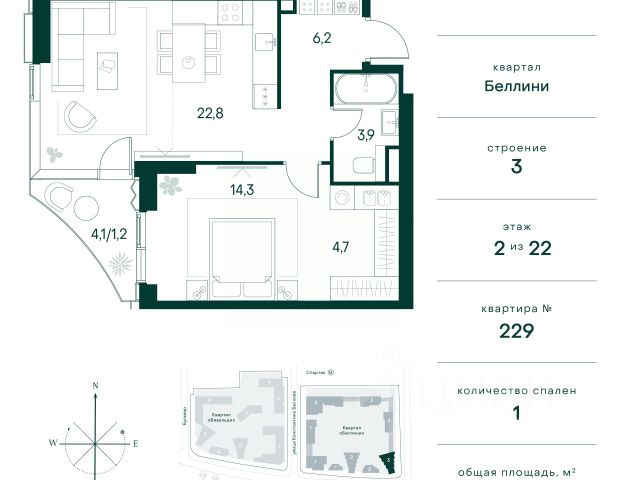 Продаётся 1-комнатная квартира 45 м². В жилом районе Алиа на 2-м этаже 28-этажного дома. Жилой район Алиа — это дома бизнес-класса у слияния Москвы-реки и Сходни. Алиа находится в Покровском-Стрешневе, экологически чистом районе на престижном северо-западе столицы. Район возводится на бывшей территории Тушинского аэрополя, где никогда не было промышленного производства. Алиа — это район разностороннего развития, спроектированный по принципу WORK.LIVE.PLAY.LEARN. Это "15-минутный город", где вся необходимая для комфортной жизни инфраструктура — на расстоянии приятной прогулки. У района удобное расположение: отсюда меньше 10 минут пешком до станций метро "Спартак" и "Тушинская" и всего полчаса на автомобиле до центра города или аэропорта Шереметьево. Архитектурную концепцию Алиа разработало бюро SOM (Skidmore, Owings & Merrill), авторы знаменитой "Бурдж-Халифа". В Алиа больше 140 планировочных решений, среди которых — редкие для Москвы форматы: квартиры с окном в ванной, пентхаус, сити-юниты и таунхаусы. Почти половина территории района отдана под благоустройство. В Алиа три парка: Линейный парк с кафе и магазинами, Центральный парк с амфитеатром, сухим фонтаном и большим плейхабом для детей всех возрастов и Прибрежный парк на собственной набережной, одной из самых длинных в Москве. В каждом урбан-блоке — закрытый внутренний двор с гипоаллергенными растениями и детской площадкой. В лобби каждого жилого корпуса в Алиа оборудована зона ожидания, колясочная, гостевой санузел и лапомойка для домашних животных. За стойкой ресепшена резидентов и их гостей встречает консьерж. Центральное лобби урбан-блока — это стильное общественное пространство с коворкингом, лаундж-зоной и кофе-пойнтом. Это "вторая гостиная" жителей урбан-блока и одно из мест, где формируется комьюнити Алиа. Два ключевых объекта инфраструктуры в Алиа — это спорткомплекс "Чкалов Арена", где представлены 25 видов спорта, и самый большой в стране бизнес-парк класса A, благодаря которому району обеспечено быстрое развитие.