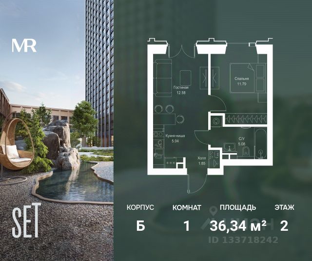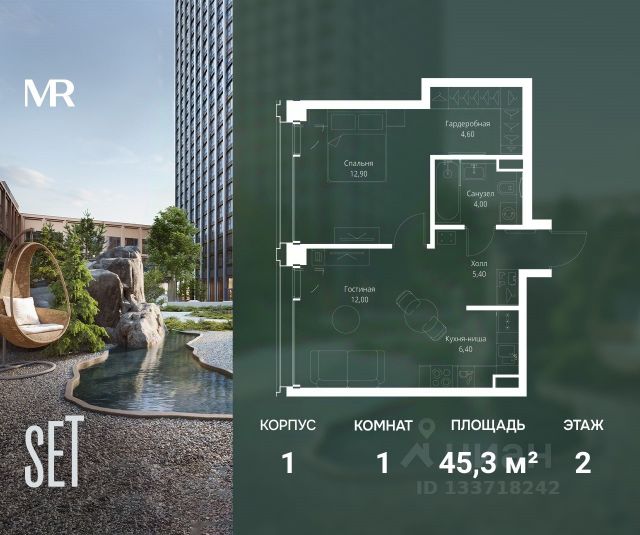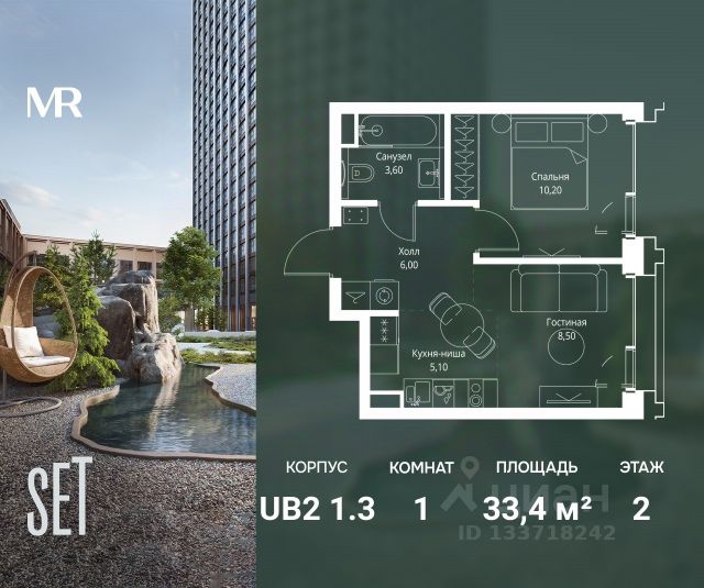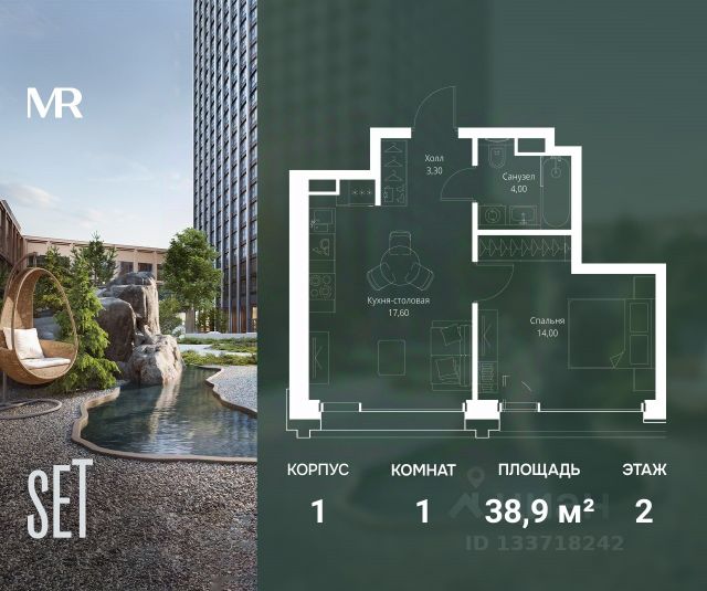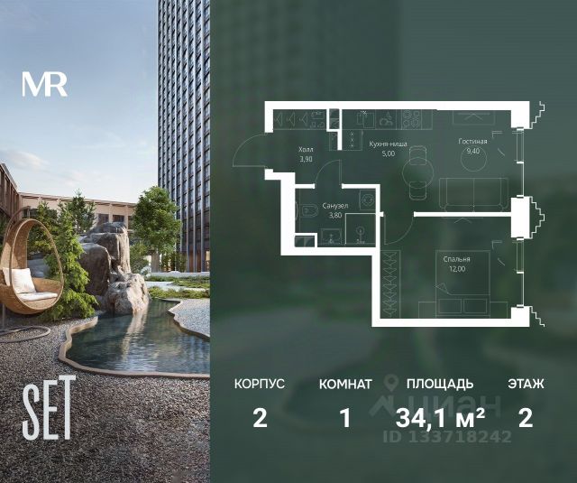 Прямая продажа от застройщика. В ЖК SET продается 1-к квартира площадью 31.20 м², расположенная в корпусе 3, на 2 этаже 45 этажного дома. SET имеет стратегически выгодное расположение в ЗАО, в районе с большой историей и блестящим будущим: между природной зоной долины реки Сетунь и Кутузовским проспектом. В рамках возведения первой очереди предусмотрено три корпуса высотой 18, 45 и 59 этажей. На верхних этажах спроектированы общедоступные смотровые площадки с панорамным обзором на центр столицы. Преимущества проекта: • Функциональные планировочные решения • Контроль проникновения через входную дверь • Система управления освещением и температурой в квартире • Система защиты от протечек с функцией перекрытия воды • Вход в подъезд по биометрическим считывателям Face ID • Скоростные лифты • Двухуровневый подземный охраняемый паркинг на 495 машино-мест Застройка SET включает в себя не только жилые корпуса, но и инфраструктурные объекты. Все необходимое для повседневного комфорта будет расположено в шаговой доступности: • Фитнес-клуб с бассейном • Ведущая городская школа, детский сад и школа искусств • Центр культуры и досуга • Медицинский центр • Кафе и рестораны Расположение комплекса: Пешком: • Метро "Давыдково" - 17 минут • Парк "Долина реки Сетунь" - 3 минуты На машине: • "Москва-Сити" - 15 минут • Садовое кольцо - 20 минут • ТЦ "Океания" - 8 минут • ТЦ "Времена года" - 13 минут • Сколково - 12 минут • Гребной канал - 17 минут Компания MR Group предлагает своим клиентам специальные условия приобретения квартир в рамках программ ипотечного кредитования от банков-партнеров.
