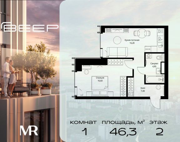 Старт продаж новой очереди! Продаётся 1-комнатная квартира общей площадью 38.16 м² без отделки в ЖК Веер на 2-м этаже 70 этажного дома. Веер.2 — вторая очередь футуристичного квартала бизнес-класса Веер. Это новая экосистема в престижном Западном округе Москвы, поражающая масштабностью внутренней инфраструктуры. ЖК находится всего в 5 минутах от Кутузовского проспекта и в 15 минутах от Сколково. Ансамбль из четырех стеклянных башен с доминантой в 237 метров разработан по принципу современного урбанизма и выражен в лаконичных объемах — параллелепипедах со сглаженными углами, которые придают зданиям утонченный вид. Расположение и транспортная доступность: • Образовательный комплекс в составе топовой школы, состоящий из двух зданий: основное на 1500 школьных и 450 дошкольных мест, отдельное здание детского сада на 300 мест. • Парк "Долина реки Сетунь" площадью более 700 гектаров • Рядом МГУ, МГИМО, РАНХиГС и Академия ФСБ • 15 минут по Кутузовскому проспекту до ужина в центре с видом на Москву-реку • 18 минут пешком до м. "Давыдково" • Открытие новых станций метро в шаговой доступности в будущем Инфраструктура: Двор в Веер.2 — это ассиметричные холмы, каменные "лабиринты", зеленые ковры и хвойные островки с единой живой экосистемой. Здесь есть все: • Павильон умиротворения Место отдыха под навесом в спокойной части двора, окруженное деревьями. • Активная тропа Тактильная дорога из камней разного диаметра для расслабляющих прогулок. • Бизнес-гарден Оборудованное пространство для работы на свежем воздухе со столом и встроенными розетками. • Детская площадка Двухуровневая площадка "Ботаника" с песочницей, переговорной трубой и горкой "Дружба". Компания MR предлагает своим клиентам специальные условия приобретения квартир в рамках программ ипотечного кредитования от банков-партнеров.