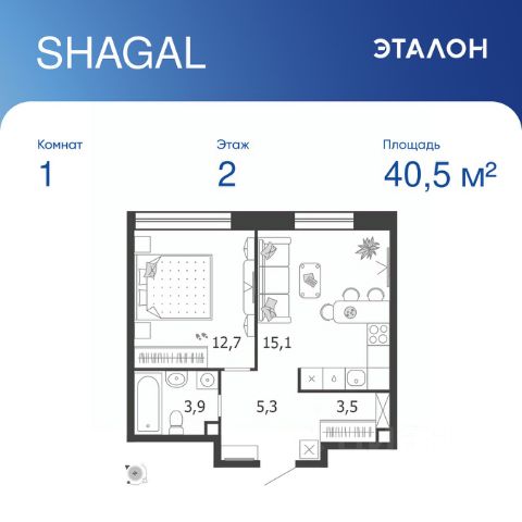 Продается 1-к квартира без отделки в ЖК "Shagal". Общая площадь квартиры — 41.4 кв. м, этаж 2 из 3. Тип дома — монолитный. Цена указана при 100% оплате. Квартал Shagal — крупнейший проект комплексного освоения в Москве. В проекте реализуется продуманная система маршрутов. Еда, покупки, услуги, прогулки, спорт, образование, работа и развлечения — все будет находиться рядом с домом: принцип 15-минутной доступности инфраструктуры и сервисов. Разнообразие и продуманность пешеходных маршрутов, а также короткие расстояния между основными точками притяжения мотивируют резидентов Shagal с удовольствием передвигаться по району пешком, не выпадая из ритма большого города. Продуманная транспортная сеть района и безопасный скоростной режим создают комфортные условия для перемещений любым способом: на автобусе, машине, самокате или велосипеде. Не нужно выезжать из района, чтобы получить комфорт и сервис самого высокого современного стандарта: все необходимые услуги, инфраструктура, парки и вторая по протяженности набережная в городе — на расстоянии 15-минутной прогулки от вашего дома. Квартал Shagal станет первым в Москве жилым районом, где будут комплексно реализованы инновационные подходы в проектировании и строительстве зданий. Архитектурная композиция состоит из домов отличающегося типа. Высотные башни-доминанты с видовыми квартирами, дома пониже, растворяющиеся в спокойствии внутренних двориков, малоэтажные камерные таунхаусы и разноэтажные дома с лоджиями на первой береговой линии соединяются в одно эстетичное современное произведение. В результате создаётся насыщенное идентичное пространство, подчёркнутое плавностью природных форм, наполненное светом, воздухом и свободой.
