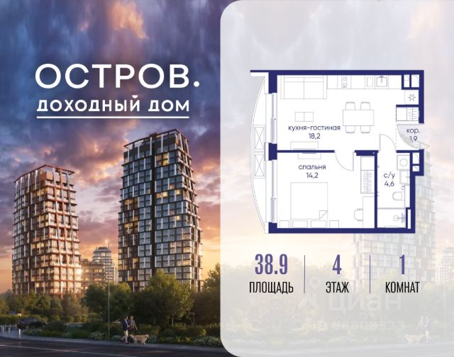 Продаётся 1-комн. квартира от застройщика: общая площадь 38.90 м², жилая 0.00 м², кухня 18.20 м², 4-й этаж, жилой квартал "Остров 14", корпус 1 (секция 1). Срок сдачи: 2 квартал 2029 года. 1 совмещенный санузел. Квартира продаётся с чистовой отделкой и мебелью! Идеальный вариант для тех, кто приобретает недвижимость для сдачи в аренду! Инвестиционный продукт для получения постоянного дохода. Остров.14 ДОХОДНЫЙ ДОМ - ЧАСТЬ ПРОЕКТА "ОСТРОВ", В 10 МИНУТАХ ОТ МОСКВА-СИТИ, В 15 МИНУТАХ ЕЗДЫ ОТ САДОВОГО КОЛЬЦА. Квартиры с отделкой и мебелью, и с управлением "под ключ" Постоянный доход для инвесторов, отельный сервис для арендаторов Востребованные для аренды планировки: студии, 1- и 2-комнатные квартиры 28-64 м2 Полная комплектация квартир: отделка, мебель, бытовая техника, кондиционеры Постоянный поток арендаторов - 10 минут от Москва-Сити, 5 минут от метро "Мневники", самодостаточная инфраструктура в квартале и собственная клубная инфраструктура в доме, спортивный, рекреационный и деловой кластеры на территории ОСТРОВА