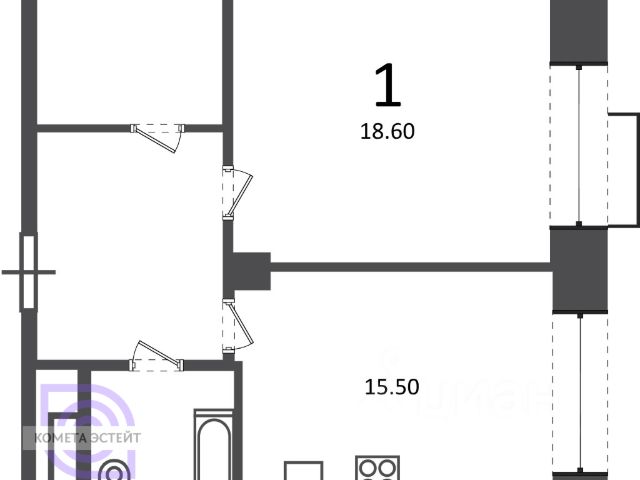 - Площадь: 35,1 м² — оптимальный формат для комфортной жизни одного человека или пары