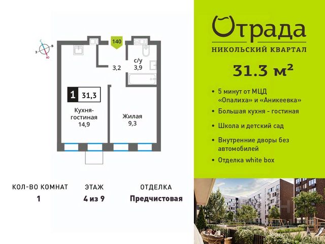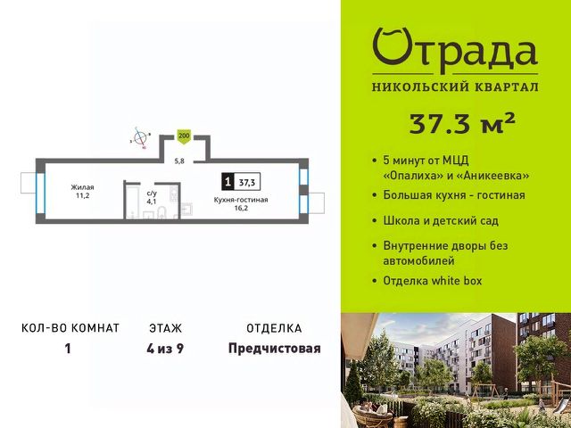 Продажа 1-комнатных квартир на 4 этаже рядом с метро Аникеевка