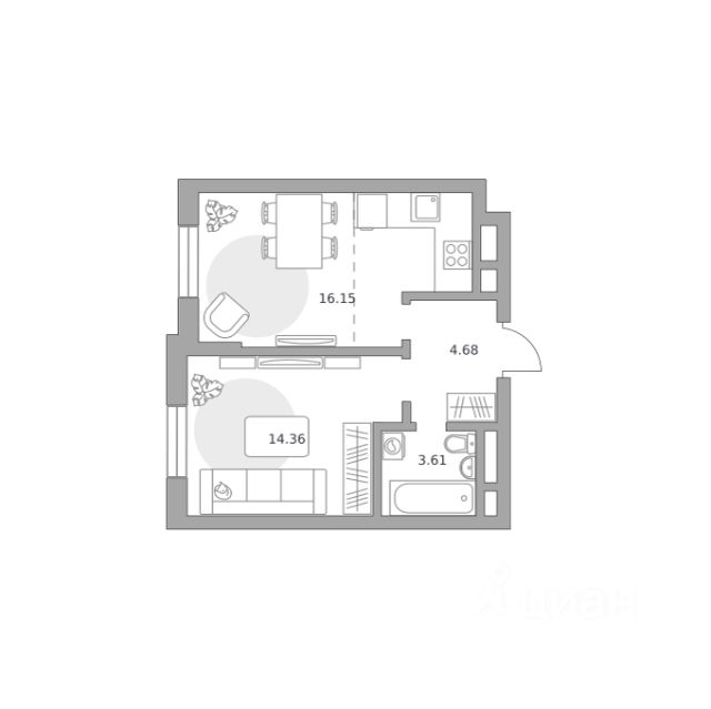 Продаётся 1-комнатная квартира 168, площадью 38,80 м², на 4 этаже в ЖК "Живописный" корпус 2.2. Стоимость — от 9616523 руб. Квартира с отделкой, планировка односторонняя, окна во двор.