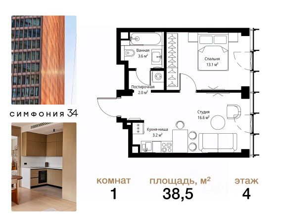 Дом сдан. Ключи в день покупки! В продаже 1-комнатная квартира площадью 38.50 м² с чистовой отделкой на 4 этаже 36 этажного дома в корпусе Сиена. ЖК Симфония 34 - концептуально новый жилой комплекс премиум-класса с подземной парковкой, состоит из четырех башен высотой 36 - 54 этажа. Квартиры сдаются с базовой (предчистовой) отделкой MR BASE или дизайнерской чистовой отделкой MR READY. Высота потолков 3 - 6 метров, окна высотой до 2,6 м. Более 100 кладовых в подземной части ЖК и более 500 на этажах. Безопасность - Система контроля входа на территорию комплекса, биометрия - Система автоматического водяного пожаротушения и противопожарного водопровода, система пожарной вентиляции - Доступ на парковку при помощи системы распознавания автомобильных номеров, карточка для контроля доступа резидентов - Система видеонаблюдения - Круглосуточная связь через приложение, телефон, голосовые сообщения с охраной, консьержем, call-центр. Расположение Пешком - 6 минут до метро "Дмитровская" - 15 минут до Тимирязевского парка На машине - 5 минут до Савеловского вокзала и Аэроэкспресса в Шереметьево - 10 минут до Москва-Сити и Садового кольца Благоустройство - 70% территории отведены под зеленые насаждения и ландшафтный дизайн - Приватный Японский сад - Детские площадки с зонированием по возрасту - Clubhouse для резидентов - Wellness & SPA - Зона для пикника, зона с гамаками - Центральное лобби, ресторан, коммерческие помещения - Дополнительный вход/выход на территорию комплекса Окружение - В 10 минутах от Симфония 34 находится дизайн-завод Flacon, где регулярно проходят культурно-образовательные и развлекательные мероприятия - Тимирязевский парк расположен в 850 м. Площадь парка 232 га - Рядом расположен парк "Дубки", площадью 16,5 га. - В 15 минутах расположен Хлебозавод 9. Здесь находятся шоурумы брендов, кафе разных кухонь мира, образовательные проекты и площадки для мероприятий Компания MR предлагает своим клиентам специальные условия приобретения квартир в рамках программ ипотечного кредитования от банков-партнеров.
