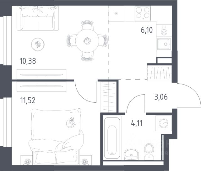 Продаётся 1-комнатная квартира 405, площадью 41,40 м², на 4 этаже в ЖК "Бригантина" корпус 1. Стоимость — от 11532857 руб. Квартира без отделки, планировка односторонняя, окна на улицу.