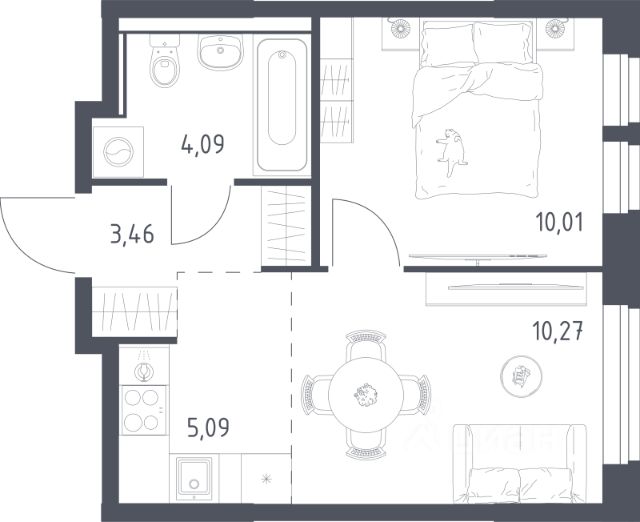 Продаётся 1-комнатная квартира 397, площадью 37,50 м², на 4 этаже в ЖК "Бригантина" корпус 1. Стоимость — от 11077806 руб. Квартира без отделки, планировка односторонняя, окна на улицу.