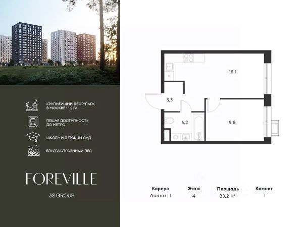 Строим кварталы для жизни с заботой о будущем. Предлагается 1-комнатная квартира комфорт-класса площадью 33,1 кв.м в корпусе 2.1 на 4-м этаже, в жилом комплексе "Ольховый Квартал". Застройщик сдает квартиры с отделкой и без нее. Последний подойдет тем, кто хочет создать свой уникальный интерьер и ничем себя не ограничивать. А если не хочется тратить время на ремонт, можно выбрать опцию — с отделкой. Перед тем как отдать ключи, застройщик установит натяжные потолки, поклеит обои под покраску, положит ламинат светлых тонов, а в санузлах — керамическую плитку и керамогранит. Приобрести квартиру возможно по специальным акциям от застройщика, с текущими условиями акций можно ознакомиться в блоке "Акций". Цена динамическая и может отличаться, уточняйте актуальность у застройщика. Жилой комплекс "Ольховый Квартал" — проект комфорт-класса в Новой Москве, в пешей доступности от 3 станций метро: "Ольховая", "Прокшино" и "Коммунарка" новой Троицкой ветки. Это 3 дома высотой 16 этажей с приватными зелеными дворами. Территория квартала граничит с зеленой рощей, а через дорогу — лесопарк для ежедневных прогулок. Рядом 7 фитнес-клубов, магазины, кафе, медицинские центры, а также школы и детские сады. Пространства для тихого отдыха будут огорожены живыми изгородями. Также высадят ель, которая создаст новогоднее настроение зимой. Предусмотрены современные детские площадки для ребят всех возрастов, воркаут-зона, площадка для выгула и тренировки собак. Любители спортивных игр оценят баскетбольную площадку и столы для настольного тенниса. Светлые фасады гармонируют с окружающей природой. Облицовочный материал — фиброцементные панели. Вечером фасады украшает архитектурная подсветка.