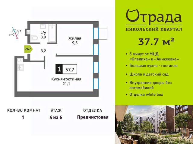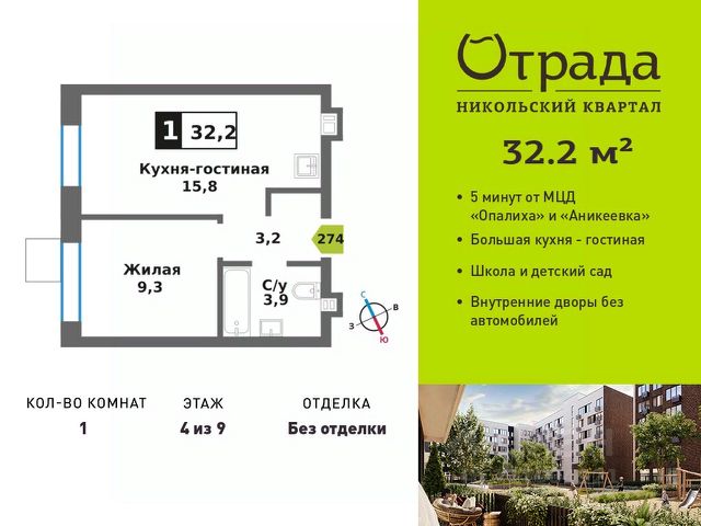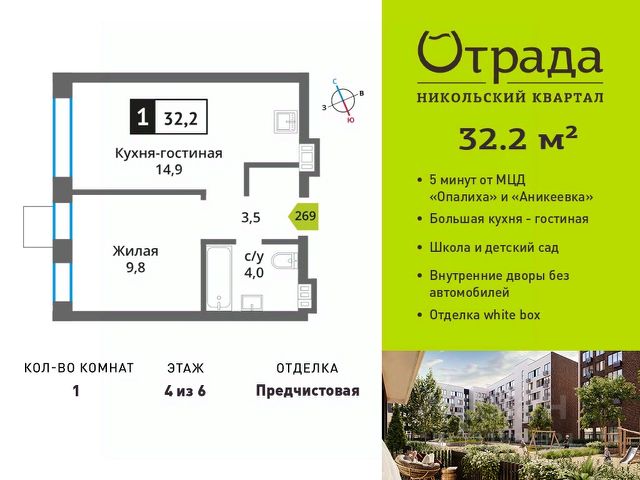Цена указана с учётом скидки при 100%-й оплате, несубсидированной ипотеке, рассрочке (кроме программы "Рассрочка 0%"). В районе, утопающем в густой зелени лесов, многочисленных парков и скверов, продаётся 1-комнатная квартира площадью 36.10 кв.м с отделкой white box. Квартира расположена на 4 этаже в жилом комплексе комфорт-класса Левел Лесной (компания Level Group/Левел групп). Жилой квартал Левел Лесной расположен в посёлке Отрадное Красногорского района Московской области. Это уникальный природный уголок вблизи района Митино. Посёлок окружён обширными лесными массивами. Обилие зелени создаёт благоприятный экологический фон и превращает этот район в оазис спокойствия и единения с природой. Расположение и инфраструктура: - Район окружен роскошной зеленью лесов и парковых зон, занимающих территорию свыше 1 000 гектаров, среди них лесопарк внутри жилого комплекса, загородный парк "Отрада", Митинский лесопарк, набережная реки Синички. - Идеальные условия для активного отдыха в любое время года: пешие и велопрогулки, бег, зимой - лыжи и катание на ватрушках. - На территории ЖК - частная школа "Светлые Горы", входящая в топ лучших школ Москвы и Подмосковья (Forbes Education, 2023), и детский сад, в пешей доступности расположены 9 детских садов. - На территории жилого комплекса - сетевые супермаркеты, локальные магазины, аптеки, салоны красоты, рестораны и другие объекты инфраструктуры в сданных корпусах. В 12 мин. пешком - крупный торговый парк "Отрада" с гипермаркетами, кинотеатром и детскими развлечениями. Отличная транспортная доступность: - 25 мин. пешком до станции метро "Пятницкое шоссе"; - 28 мин. на автобусе до станции метро и МЦД-2 "Волоколамская"; - 11 мин. на авто до МКАД; - 25 мин. на авто до ТТК. Продуманный архитектурный проект: - Концепция проекта Левел Лесной разработана бюро СПИЧ; - Высотность комплекса до 15 этажей с уникальными видами на лесные массивы и город; - Высота потолков до 3 м; - Современные окна высотой до 1,6 м, в части квартир предусмотрены окна в пол. Высота подоконников 0,6 м. Благоустройство: Продуманное пространство и аура приватного европейского городка рождают чувство лёгкости и расслабления у каждого, кто попадает на территорию проекта. Концепцию общественных площадок разработали в партнёрстве два архитектурных бюро: Highlight Architecture и SCAPE. В безопасных дворах без машин каждый обязательно найдёт себе место для вдохновения, отдыха и спорта.