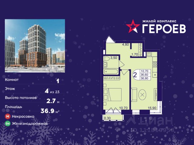 • ✓ В базе Циан 47 1-комнатных квартир на 4 этаже рядом с метро Некрасовка
