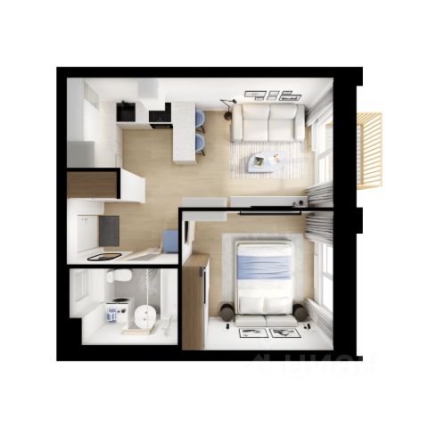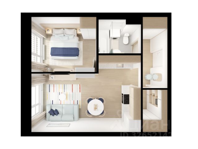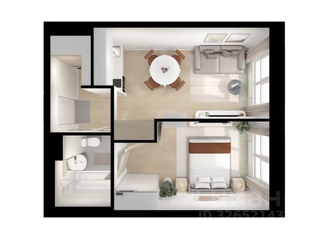 Продаётся 1-комнатная квартира 1591, площадью 32,80 м², на 4 этаже в ЖК "Ильинойс" корпус 3. Стоимость — от 9500467 руб. Квартира с отделкой, планировка односторонняя, окна на улицу.