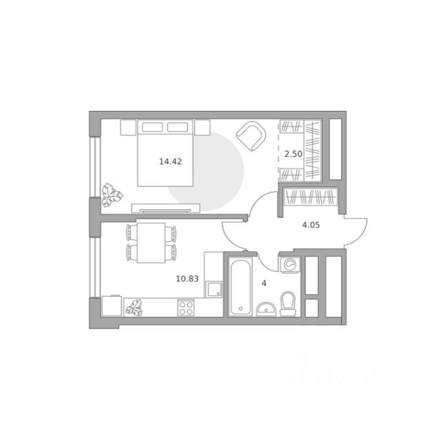 Продаётся 1-комнатная квартира 42, площадью 35,80 м², на 4 этаже в ЖК "Новая Алексеевская роща" корпус 4. Стоимость — от 6557063 руб. Квартира без отделки, планировка односторонняя, окна во двор.