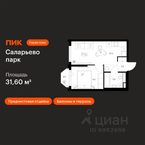 Продаётся 1-комн. квартира площадью 35,4 кв.м на 4 этаже 16 этажного дома (Корпус 82.5, Секция 5) проекта ПИК Саларьево парк. Светлый просторный подъезд на уровне земли, функциональная планировка, большие окна, предчистовая отделка. Жилой район "Саларьево парк" расположен в Новой Москве, в четырёх километрах от МКАД по Киевскому шоссе. Две станции метро: "Саларьево" и "Филатов луг", — находятся в пешей доступности от проекта. Дойти до них можно за 510 минут. В квартале уже создана качественная среда, где есть абсолютно всё для полноценной жизни, работы и отдыха. Благодаря удобному расположению проекта всё важное будет рядом: детские сады, школы, кафе и рестораны, шопинг в торговых центрах, фитнес и даже аэропорт. Все корпуса в квартале гармонично сочетаются, образуя единую городскую среду. Между собой их объединяет невысокая этажность и натуральная цветовая гамма. Здесь приятно гулять и проводить время на улице всей семьёй. В "Саларьево парке" создана уникальная образовательная среда, включающая в себя шесть школ, рассчитанных на 6 250 учеников. Две из них уже открыты, их посещает 2 300 детей. Также на территории "Саларьево парка" находится 12 детских садов, один из которых с бассейном. Сейчас уже открыты 7 садов. В "Саларьево парке" открыта уникальная игровая площадка — PlayHub "Оригами". Здесь есть ручей, горка-труба и рельефные холмы. Взрослые смогут отдохнуть в уютном кафе, пока дети играют. Также на территории проекта есть SportHub — большая спортивная зона, разделённая по интересам и возрастам. Здесь можно заниматься разными видами спорта: футболом, баскетболом, волейболом и стритболом. Зимой центральную часть площадки превращают в каток. Во дворах-парках жилого квартала есть места для отдыха, детские и спортивные площадки. На первых этажах домов расположены магазины, кафе и полезные сервисы. Также вблизи проекта есть несколько масштабных торговых центров. До ТЦ "Саларис" пять минут пешком, до "Рио", Metro Cash & Carry и "Леруа Мерлен" — пять минут на автомобиле. Артикул 1032756 (Застройщик ООО "Специализированный Застройщик "Тирон")