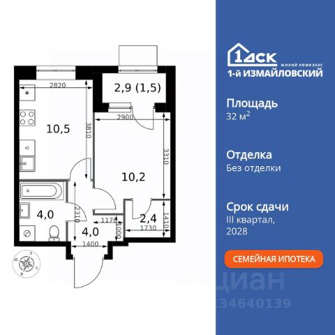 ТОЛЬКО 4 ДНЯ ДО 10.02 • Дополнительная скидка 10% • Ставка 10% по стандартной ипотеке для всех без наценок • Ставка 3,5% по семейной ипотеке Успейте купить выгодно! Прямая продажа от застройщика! Жилой Комплекс Комфорт класса. Продаётся 1-к квартира номер 459 общей площадью 32.6 кв.м. на 4-м этаже 32 этажного здания. Без отделки. Особенности квартиры: - Мастер-зона с гардеробной. Просторное место для отдыха и удобного хранения вещей. - Просторная спальня, в которой можно разместить большую кровать. - Линейная планировка - максимальная функциональность и удобство. - Гибкая планировка - создайте пространство по своему вкусу. - Место для игры/занятия спортом - идеальное пространство для активных детей. - Линейная кухня - функциональность и практичность в одном решении. - Гардеробная - удобство для хранения и организации вещей. - Ниша под шкаф - компактное и удобное место для вещей. - Лоджия - уютное место для отдыха и тишины. Информация о комплексе: Современный архитектурный проект "1-й Измайловский" - идеальное место для проживания, расположенное в восточной части Москвы в окружении 14 000 гектаров леса. Комплекс пронизан атмосферой здорового образа жизни и благополучия. Сиреневый сад и близлежащие лесопарки - это места, где можно насладиться лыжными прогулками зимой и тонизирующими пробежками летом. Расположенный между Щелковским шоссе и Амурской улицей, "1-й Измайловский" осмысляет себя не столько через близость к городским точкам притяжения, сколько через соседство с зелеными пространствами и спортивными объектами. Он отгорожен от шоссе застройкой первой линии и собственными садами здоровья. В его окнах - изумрудное море парка "Лосиный остров" и густые кроны окрестных дворов. В его графике - занятия спортом и прогулки в Измайлове. Транспортная доступность: Не более 2,5 км до станций метро "Щёлковская" и "Черкизовская" и МЦК "Локомотив". Щёлковское шоссе соединяет квартал с Северо-восточной хордой и МКАД, Центральным автовокзалом и Восточным железнодорожным вокзалом. Две автобусные остановки в паре минут ходьбы и 11 маршрутов общественного транспорта. На автомобиле 3 минуты до СВХ 12 минут до ТТК 15 минут до Садового кольца Внутренняя инфраструктура: Комплекс находится в исторически сложившемся районе Москвы с хорошим качеством и плотностью инфраструктуры. Торговые центры и сетевые магазины -6 детских садов, включая собственный детский сад на 125 мест -3 школы, включая собственную школу -Поликлиники и медицинские центры -Парки и зоны отдыха Расположение архитектурного проекта создает все условия для тех, кто стремится к здоровому образу жизни и для тех, кто уже сделал выбор в его пользу. В ближайшем окружении расположены несколько стадионов и множество спортивных объектов для занятий спортом на любой вкус: от всеми любимого футбола, баскетбола и до конного спорта. В окружении проекта более 30 километров организованных беговых и велодорожек.