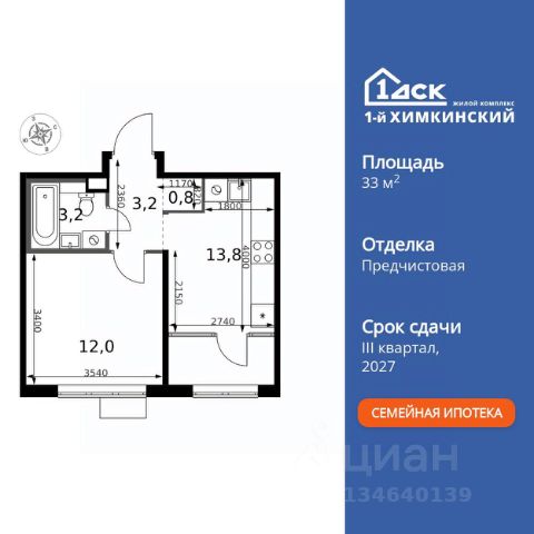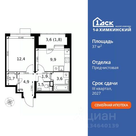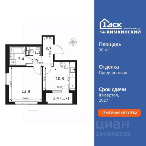 БЕЗ ПЕРВОНАЧАЛЬНОГО ВЗНОСА! ТОЛЬКО 4 ДНЯ ДО 10.02 • Дополнительная скидка 10% • Ставка 10% по стандартной ипотеке для всех без наценок • Ставка 3,5% по семейной ипотеке Успейте купить выгодно! Прямая продажа от застройщика! Жилой Комплекс класса Комфорт. Продаётся 1-к квартира номер 32 общей площадью 36.4 кв.м. на 4-м этаже 17 этажного здания. Отделка Whitebox. Цена с учётом скидки. Особенности квартиры: - Линейная планировка - максимальная функциональность и удобство. - Раздельный санузел - больше удобства для всех членов семьи. - Гардеробная - удобство для хранения и организации вещей. - Лоджия - уютное место для отдыха и тишины. Квартира с предчистовой отделкой (White box). Вам не придется заниматься черновыми и трудоёмкими работы, а чистовую отделку и дизайн - сделайте на свой вкус. Информация о комплексе: Квартал класса комфорт плюс, где современное городское пространство граничит с удивительной природой вокруг. 1-й Химкинский расположен на территории в 102 га и органично вписан в природное окружение Химкинского леса и канала им. Москвы. В проекте предусмотрена богатая коммерческая инфраструктура с собственным торговым центром, общеобразовательные учреждения и социальные объекты. Изюминкой жилого комплекса будут спортивно-оздоровительный комплекс с термами и SPA и семейный парк развлечений. Транспортная доступность: ЖК "1-й Химкинский" дает возможность выбрать любой способ передвижения как до города, так и до самых разных объектов, которые могут представлять интерес для его жителей. Не важно, какой способ передвижения вы предпочитаете, успевать всегда и везде можно вне зависимости от выбора транспорта. - 8 мин. пешком (800 м) до остановки "Золотая Арка" -10 мин пешком (1 км) до остановки "Поворот на Ивакино" Внутренняя инфраструктура: - Безопасность: закрытые дворы без машин, безбарьерная среда и сквозные подъезды, камеры на детских площадках с возможностью трансляции на смартфоне - Идеальный отдых в кругу семьи: семейный парк развлечений на территории, торговый центр (2-х этажный) общей площадью более 8 тыс. кв. м с фудкортом - Образование: 3 детских сада и современная муниципальная школа на 2450 мест - Спортивная среда: закольцованный веломаршрут с навигацией, спортивный комплекс с термами, закрытый тренажерный зал и зоны ворк-аута - Социальные объекты: поликлиника со станцией скорой помощи, пожарное депо - Подземный паркинг и кладовые помещения на -1 этаже, станция техобслуживания и автомойка на территории