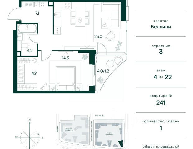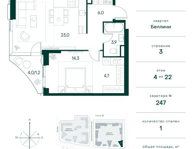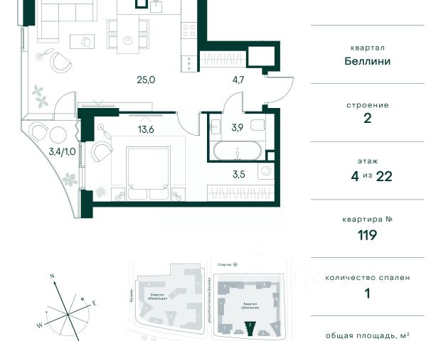 Продаётся 1-комнатная квартира 40.2 м². В жилом районе Алиа на 4-м этаже 12-этажного дома. Жилой район Алиа — это дома бизнес-класса у слияния Москвы-реки и Сходни. Алиа находится в Покровском-Стрешневе, экологически чистом районе на престижном северо-западе столицы. Район возводится на бывшей территории Тушинского аэрополя, где никогда не было промышленного производства. Алиа — это район разностороннего развития, спроектированный по принципу WORK.LIVE.PLAY.LEARN. Это "15-минутный город", где вся необходимая для комфортной жизни инфраструктура — на расстоянии приятной прогулки. У района удобное расположение: отсюда меньше 10 минут пешком до станций метро "Спартак" и "Тушинская" и всего полчаса на автомобиле до центра города или аэропорта Шереметьево. Архитектурную концепцию Алиа разработало бюро SOM (Skidmore, Owings & Merrill), авторы знаменитой "Бурдж-Халифа". В Алиа больше 140 планировочных решений, среди которых — редкие для Москвы форматы: квартиры с окном в ванной, пентхаус, сити-юниты и таунхаусы. Почти половина территории района отдана под благоустройство. В Алиа три парка: Линейный парк с кафе и магазинами, Центральный парк с амфитеатром, сухим фонтаном и большим плейхабом для детей всех возрастов и Прибрежный парк на собственной набережной, одной из самых длинных в Москве. В каждом урбан-блоке — закрытый внутренний двор с гипоаллергенными растениями и детской площадкой. В лобби каждого жилого корпуса в Алиа оборудована зона ожидания, колясочная, гостевой санузел и лапомойка для домашних животных. За стойкой ресепшена резидентов и их гостей встречает консьерж. Центральное лобби урбан-блока — это стильное общественное пространство с коворкингом, лаундж-зоной и кофе-пойнтом. Это "вторая гостиная" жителей урбан-блока и одно из мест, где формируется комьюнити Алиа. Два ключевых объекта инфраструктуры в Алиа — это спорткомплекс "Чкалов Арена", где представлены 25 видов спорта, и самый большой в стране бизнес-парк класса A, благодаря которому району обеспечено быстрое развитие.