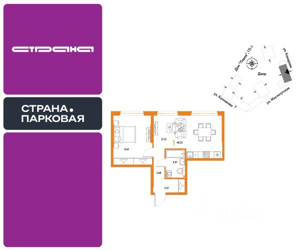 Рассрочка 0% Продаётся 1-комнатная квартира площадью 43.1 м² на 4 этаже в Жилом Комплексе "Союз". Квартал здоровой жизни премиум-класса с рекордным количеством олимпийских видов спорта: - Ледовая арена для хоккея и фигурного катания, - Футбольные поля для тренировок, - Спортивный зал для фехтования, - Бассейн на 6 дорожек, - Центр единоборств, - 4 крытых площадки для настольного тенниса, - 7 теннисных кортов (крытых и открытых), - 4 крытых площадки для сквоша, - Легкоатлетический стадион, - Площадки для баскетбола и волейбола. Уникальные форматы квартир с мастер-спальнями, приватными террасами, балконами, а также пентхаусы с открыточными видами на город. Все квартиры продаются с отделкой Shell&Core и панорамным остеклением. Расположение Пешком: - 2 мин. до парка "Сад Будущего"; - 6 мин. до ст. м. "Ботанический сад"; - 6 мин. до ст. МЦК "Ботанический сад"; - 6 мин. до парка "Леоновская роща"; На автомобиле: - 2 мин. до СВХ (МСД); - 5 мин. до Проспекта Мира; - 10 мин. до ТТК; - 15 мин. до Садового кольца; - 25 мин. до аэропорта "Шереметьево". Благоустройство - собственная спортивная инфраструктура 7 Га; - зона для пикников; - игровые и спортивные площадки для детей всех возрастов; - розарий, а также сосновые, каштановые и дубовые аллеи; - площадки под открытым небом для занятий спортом и йоги; - игровые комнаты для детей; - лаунж-зона для резидентов; - просторная переговорная для деловых встреч; - премиальный ресторан "Шабада" Сосо Павлиашвили с водными арт-объектами на прогулочной аллее, садом ароматных трав и сценой под открытым небом; - кафе, химчистки, аптеки и супермаркеты рядом с домом. Окружение - 8 парков: Сад Будущего, Леоновская роща, Хуамин, Главный ботанический сад РАН, Шереметьевская дубрава, Останкино, парк спорта "Яуза", пойма реки Яуза и музей-усадьба "Останкино"; - 3 ВУЗа: ВГИК, РГСУ, МГПУ; - 12 школ, в том числе: школа 1499 им. И.А. Докукина (топ 100), Brookes Moscow, IThub школа; - 18 детских садов, в том числе билингвальный ALERTUM KIDS; - один из крупнейших океанариумов Европы "Москвариум"; - один из крупнейших в Европе торгово-развлекательных центров "Европолис".